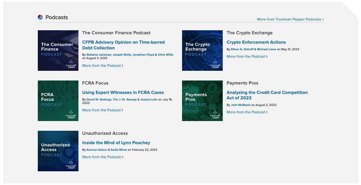 - LexBlog helped Troutman Pepper transform their Consumer Financial Services Law Monitor blog into a microsite.