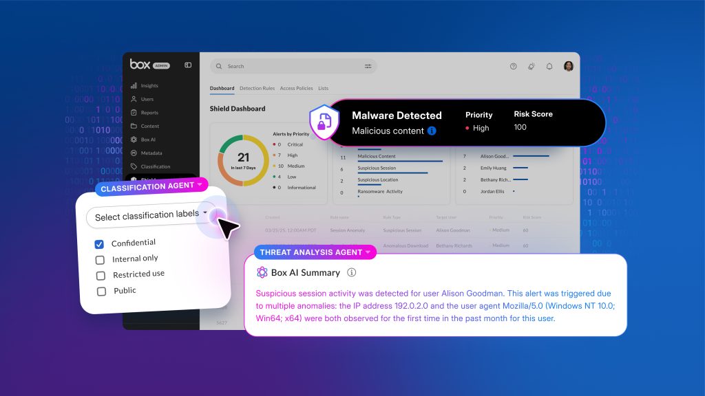 At its annual BoxWorks conference in San Francisco today, Box announced the launch of Box Shield Pro, an enhanced suite of AI-powered security capabilities designed to address the evolving cybersecurity needs of law firms, financial services firms, healthcare organizations, government agencies, and others. The new offering builds on Box’s existing Shield security platform by adding