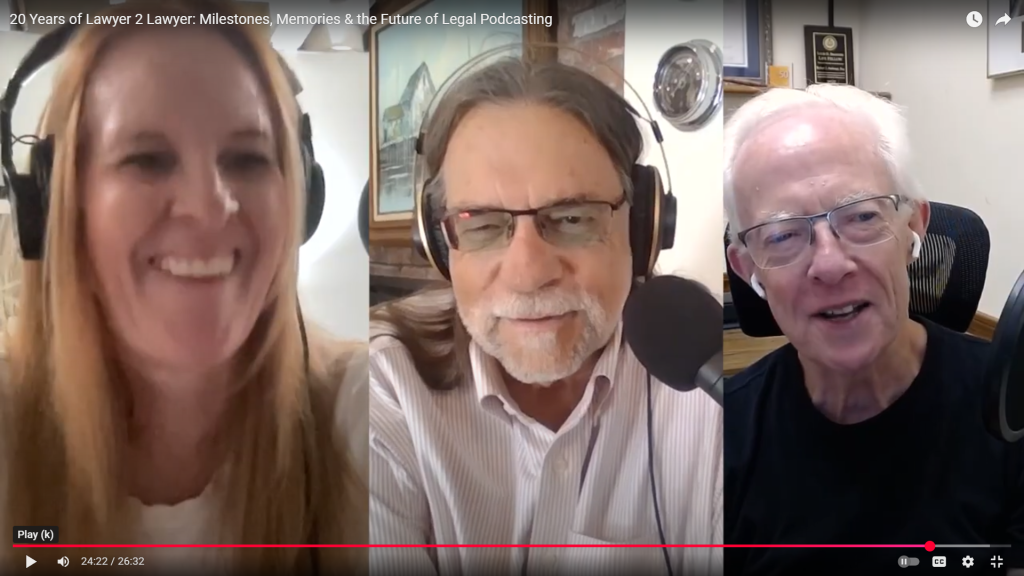 Twenty years ago, I had the great good fortune to help launch the podcast Lawyer 2 Lawyer as cohost along with J. Craig Williams. It was one of the first legal podcasts of any kind, was the very first podcast of the Legal Talk Network, and is today the longest continuously running of all legal